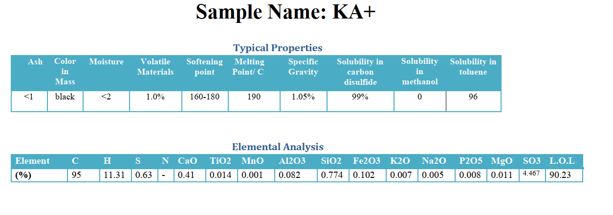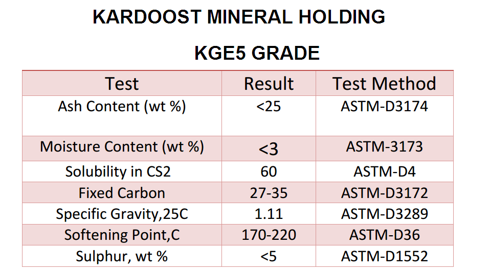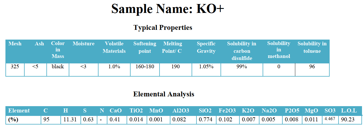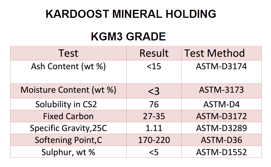 شرکت کاردوست یکی از برترین صادر کننده های گیلسونایت در خاور میانه است که می تواند این محصول را با بالاترین کیفیت و پایین ترین عش تامین کند آنالیز چند نمونه از این محصول در زیر آورده شده است